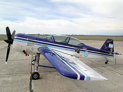Guillermo Krause, el piloto de la escuadrilla acrobática Cruz del Sur que deleitó a los presentes con sus maniobras a bordo del avion ruso de entrenamiento Sukoi-29AR. |