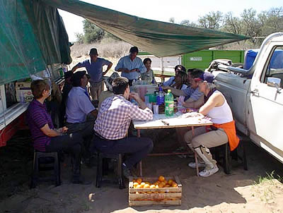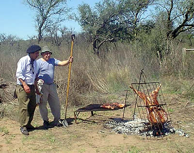 ¿Las comidas durante las paradas?: Asado al asador, Lechón, Bife al disco, Estofado de cordero a la olla de hierro, Matambre de novillo..., «siempre con algo de verduras para acompañar» acotó Carlos Lorences «y buen vino» señaló uno de sus colaboradores...