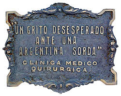 El pueblo araucense se compromete a mantener viva su memoria e invita a los visitantes a dejar una placa (como la de la foto) que recuerde su admiración por este médico rural que, con sus aportes, dejó huellas en la medicina mundial. |